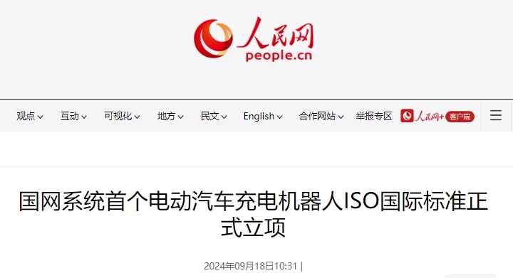 2024年,國網天津電科院申報的ISO國際標準《機器人技術服務機器人性能標準和相關測試方法第8部分:電動汽車充電機器人》正式獲批立項,成國網系統(tǒng)首個電動汽車充電機器人ISO國際標準。