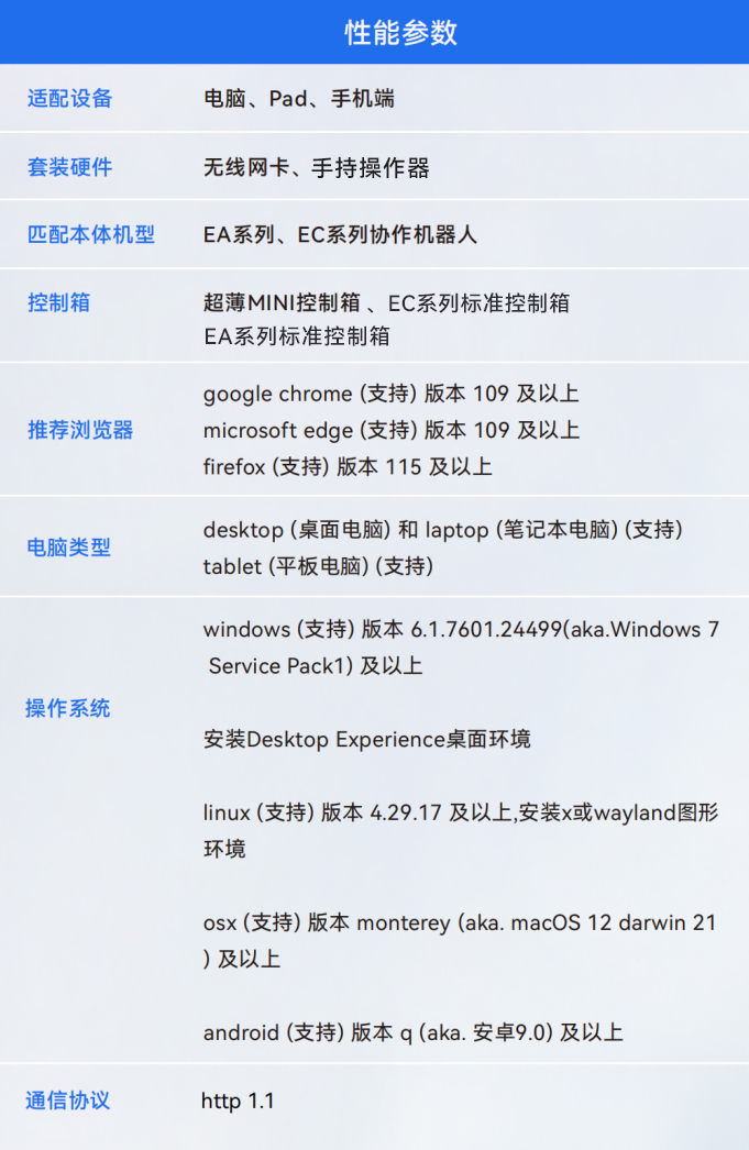 E-Wireless無線套裝產品,支持手機/電腦/pad跨設備多端協同,基于瀏覽器的WebUI示教軟件,可滿足用戶2個核心訴求: