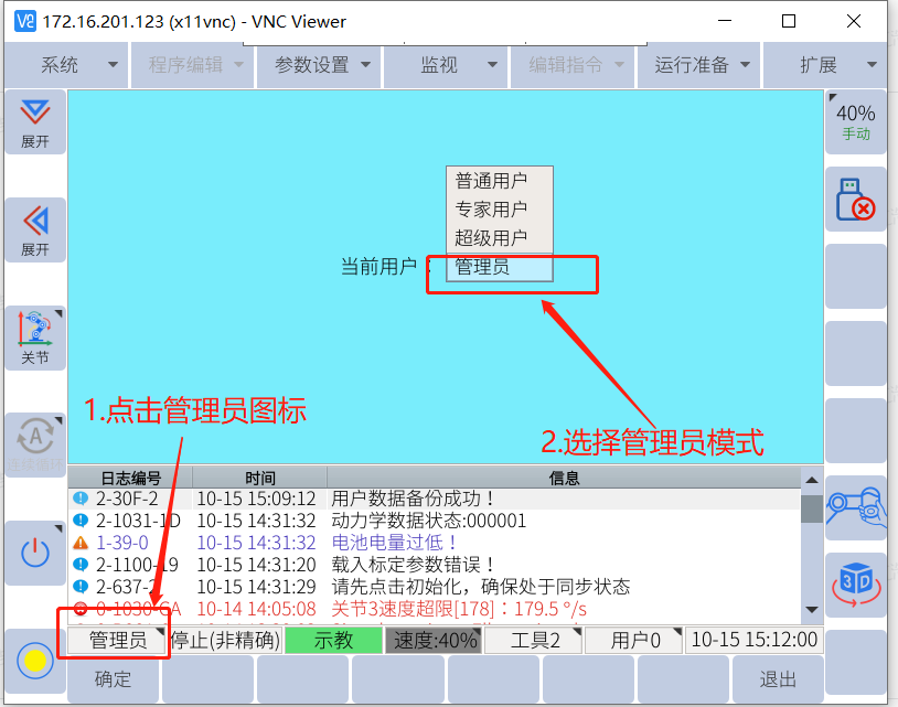 2.1.5 把U盤插到控制USB口上面,點擊系統---機器人升級----系統升級---選擇要升級的文件---點確定,等待幾分鐘升級完成后,系統會自動重啟。