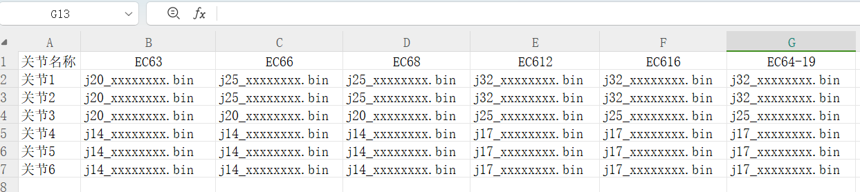 固件升級文件名稱:單關節升級: