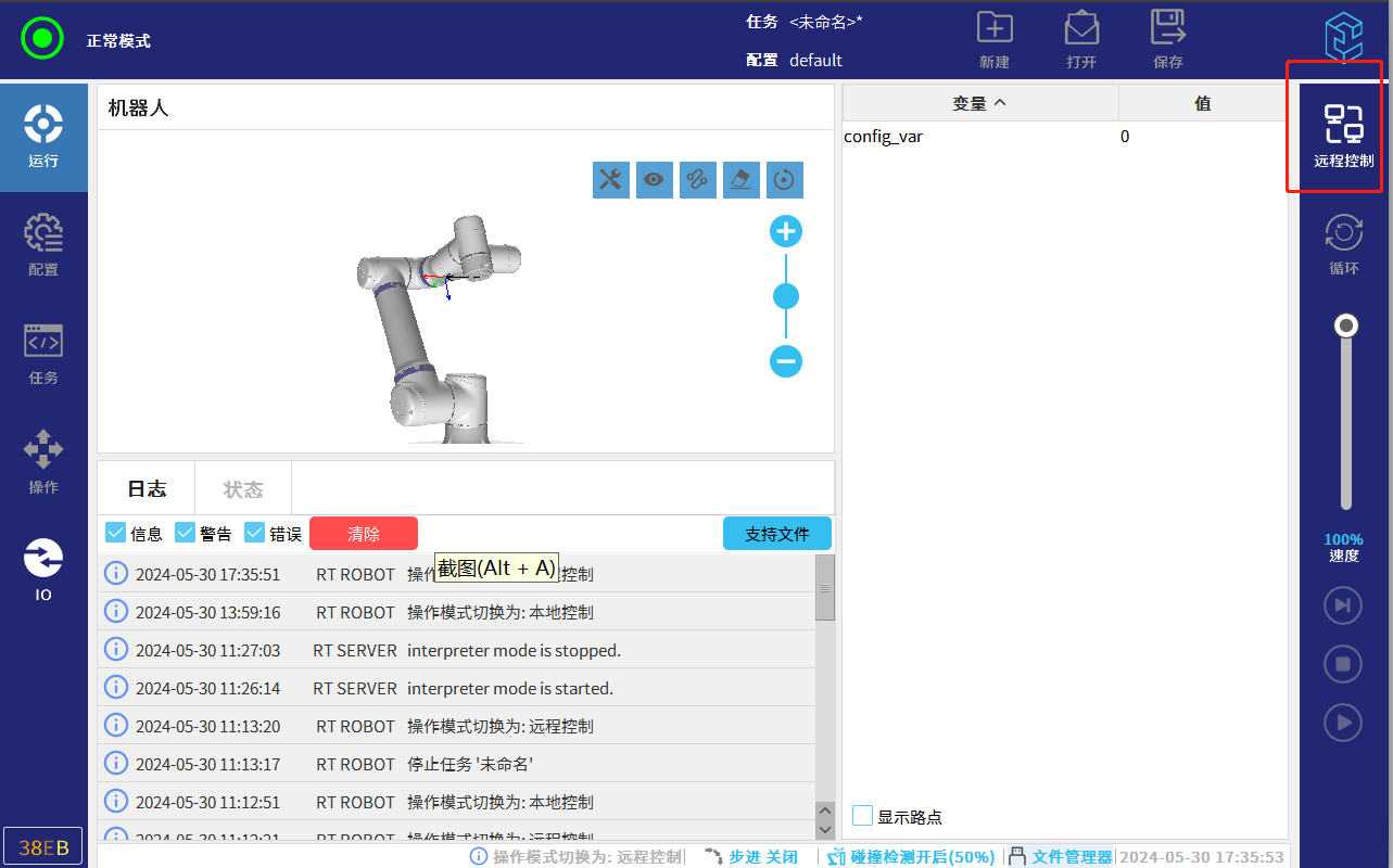 1.將機(jī)器人打到遠(yuǎn)程模式