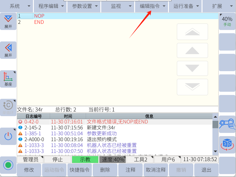 1. 推薦使用Web示教器進(jìn)行LUA編程,詳細(xì)使用Web示教器可以咨詢官方技術(shù)文檔。