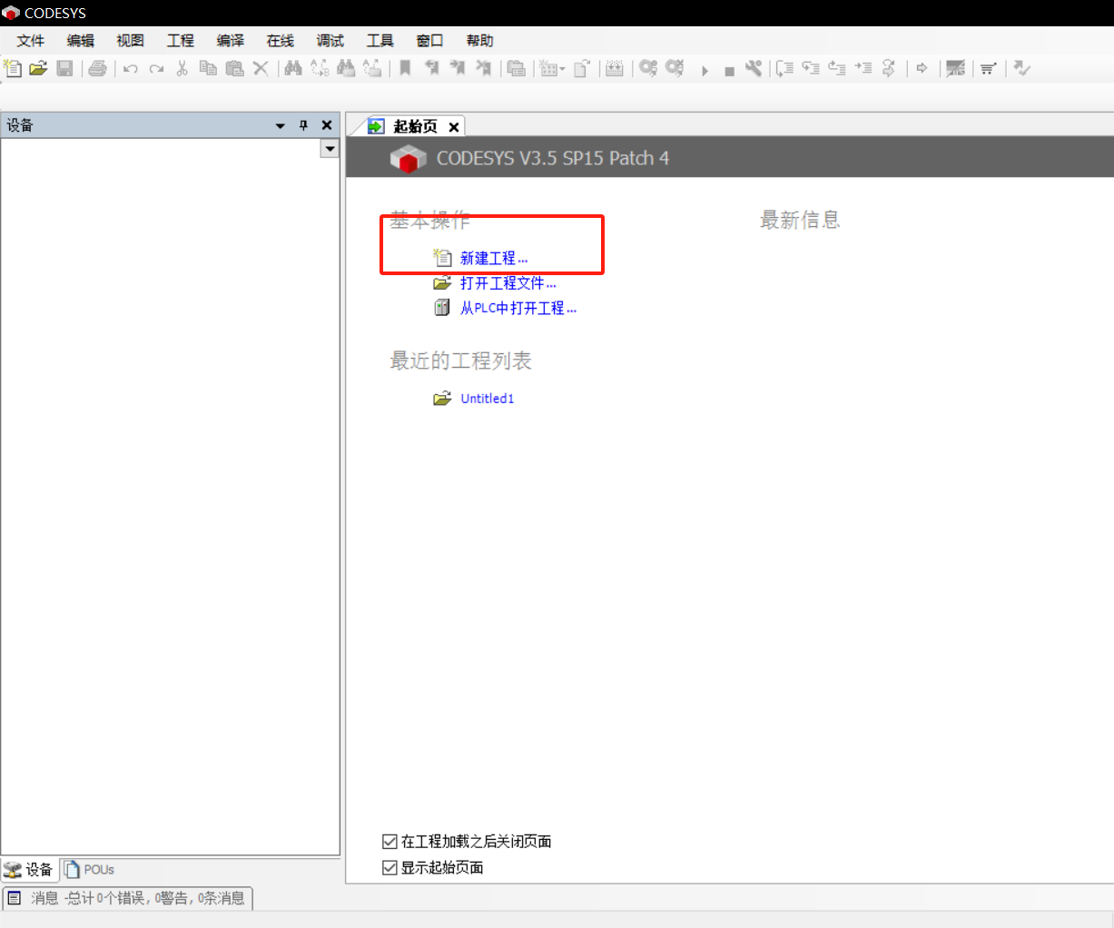 打開 codesys 軟件,點(diǎn)擊新建程序,如下所示