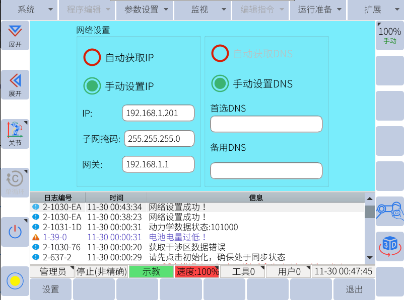 答:檢測(cè)一下機(jī)器人IP與電腦是否在同一網(wǎng)段,ping能否ping通,配置頁(yè)面是否有設(shè)置對(duì)應(yīng)的機(jī)器人IP.