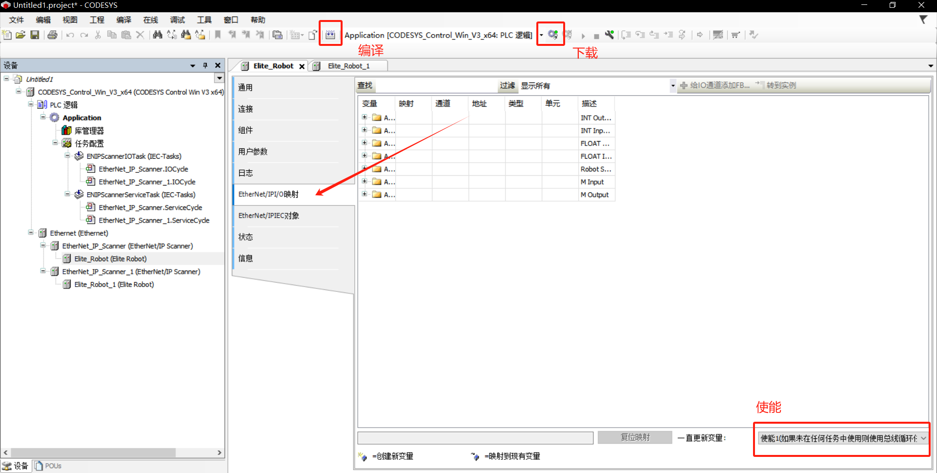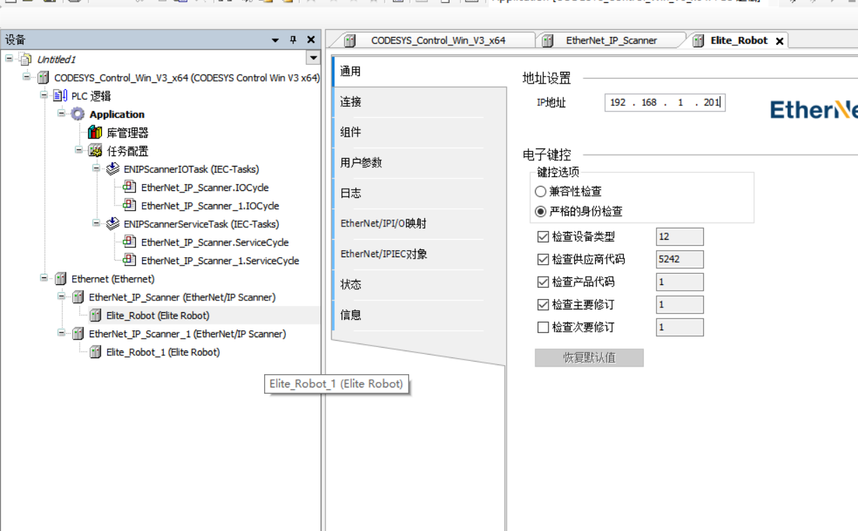 codesys與兩臺(tái)EC機(jī)器人進(jìn)行EIP通訊