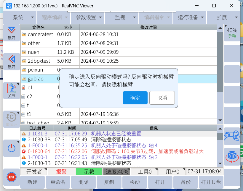 警告:進(jìn)入反向驅(qū)動前請扶好機(jī)器人。