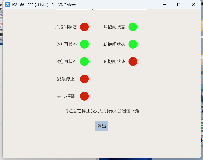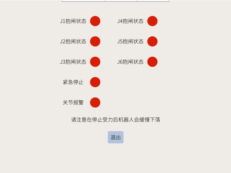 在該狀態(tài)下如果不扶好機(jī)器人,松開抱閘關(guān)節(jié)會緩慢重力向下掉落。當(dāng)機(jī)器人反向驅(qū)動脫離卡死后應(yīng)該點(diǎn)擊退出。