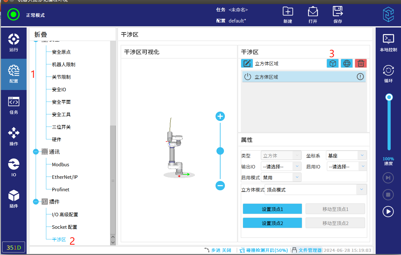 (2):如圖2-1 點擊 配置(1)-干涉區(2)-點擊立方體圖標(3)新建一個立方體干涉區