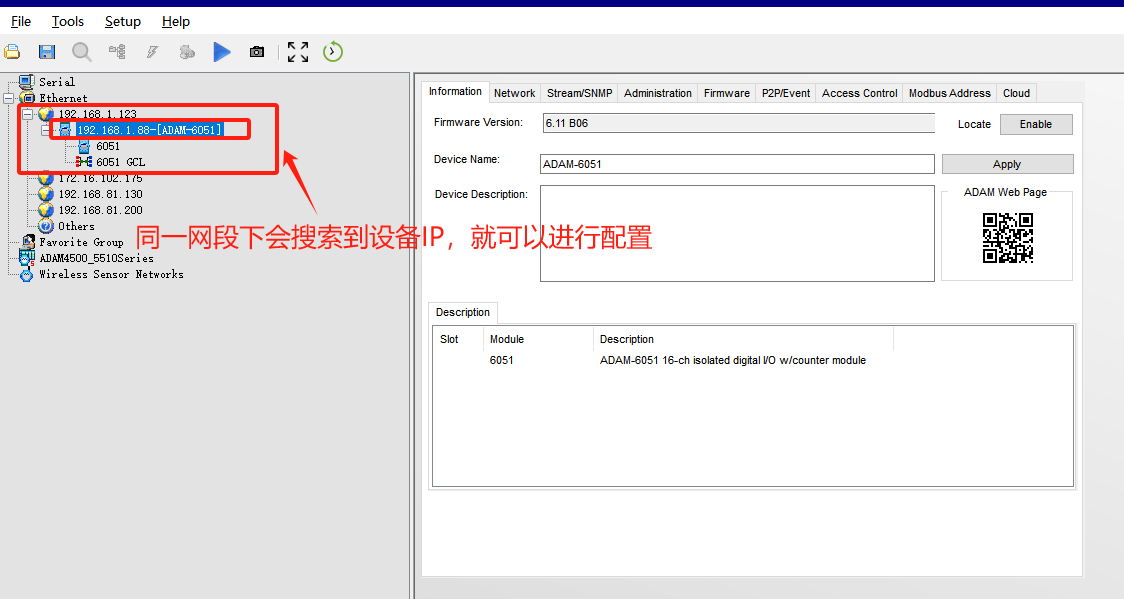 電腦IP與模塊的IP設置為同一網段,然后打開軟件,按下圖操作開始進行