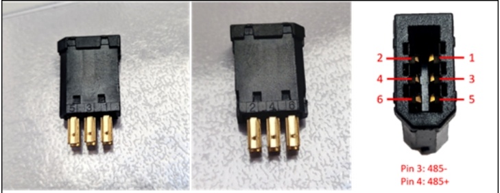 在控制柜接口處我們可以看到RS485接口,該接口就是我們的485接口,modbus_rtu時用到該接口,其中針腳3對應485-,針腳4對應485+,如下圖。