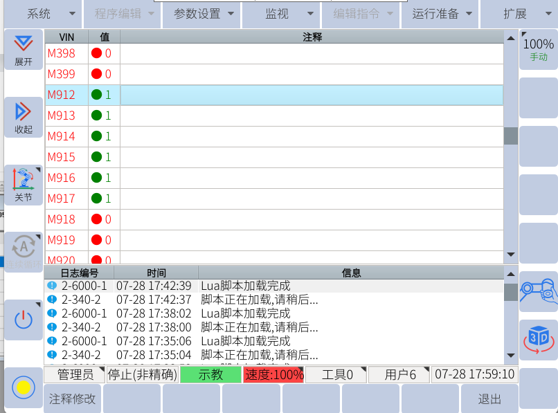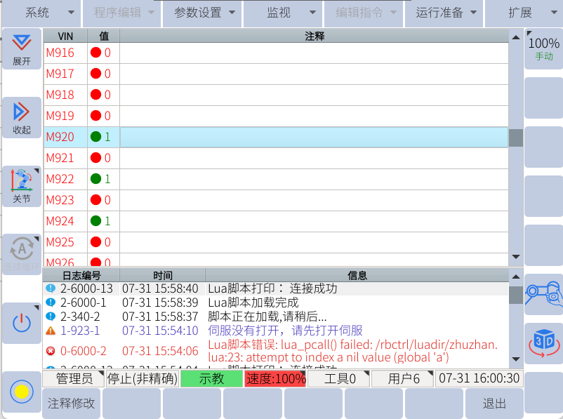 示教器中查看對應的M920、M922、M924分別狀態為1