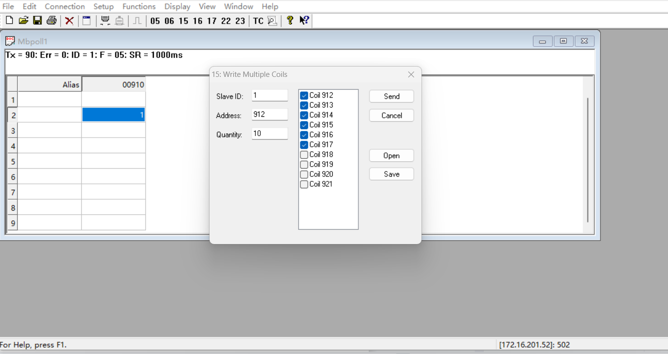 modbus_write_bits 寫多個線圈指令,功能碼15