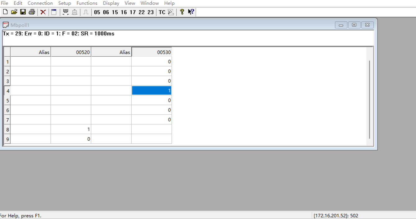 網絡助手端直接讀取528及534當前狀態為1