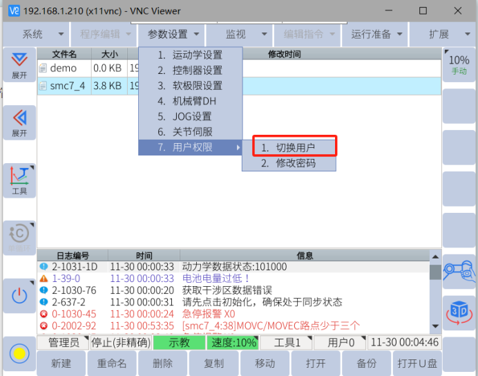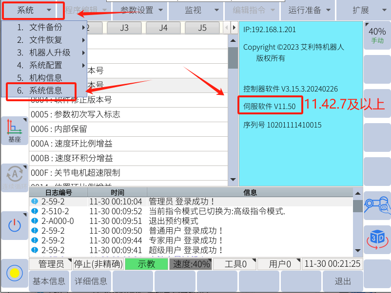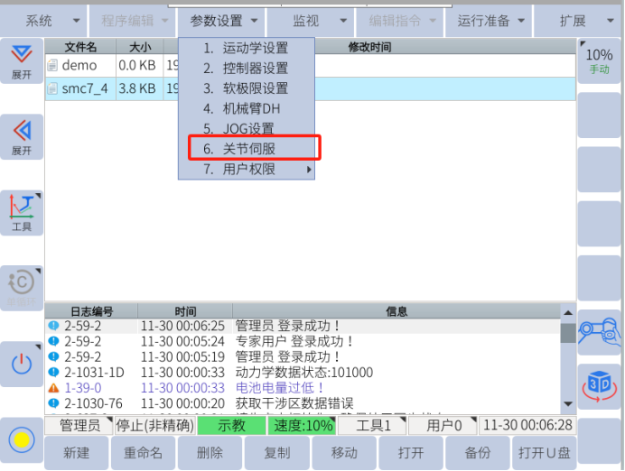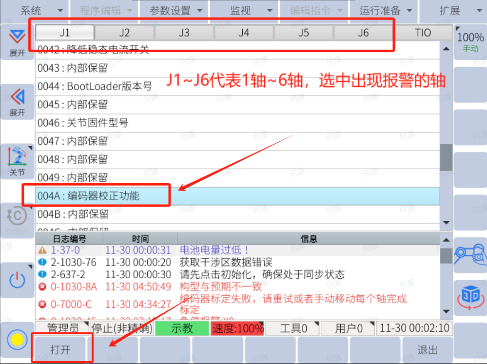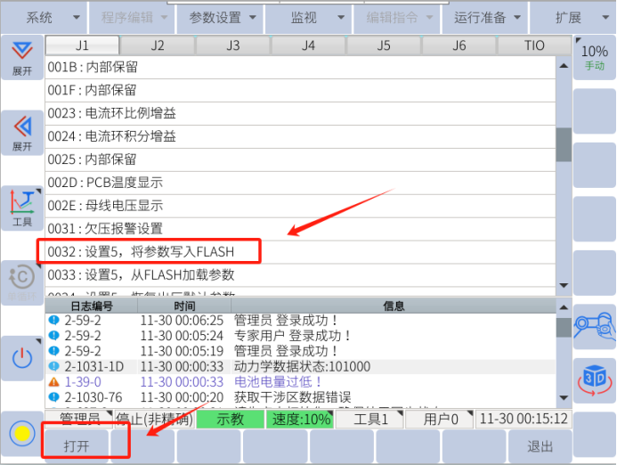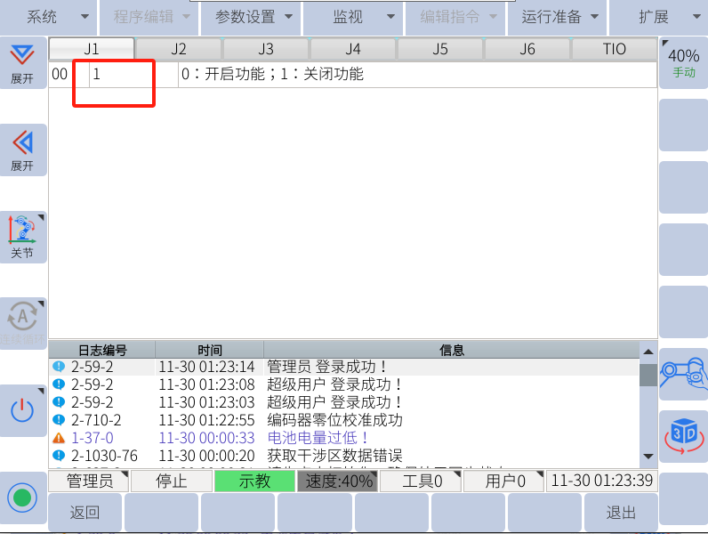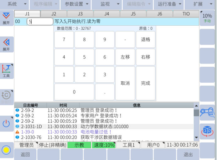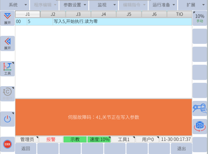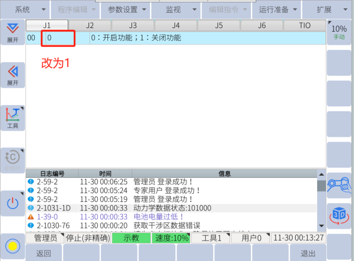 改為5后機器人會提示報警,等待幾秒后清除報警,然后斷電重啟機器人