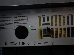 ● 按下示教器開機(jī)按鈕后,觀察下圖兩個(gè)指示燈是否亮起,兩個(gè)都亮則Safe IO板異常
