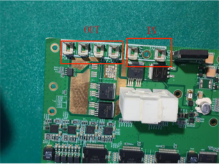 (1)通過三根電機(jī)線分別測(cè)量外殼、測(cè)量 48V 正極的阻抗,可判斷驅(qū)動(dòng)板是否短路;正常狀態(tài)下所有阻抗均趨近無窮大,任何一根線出現(xiàn)低阻抗,即代表驅(qū)動(dòng)板內(nèi)部功率器件擊穿或線路短路