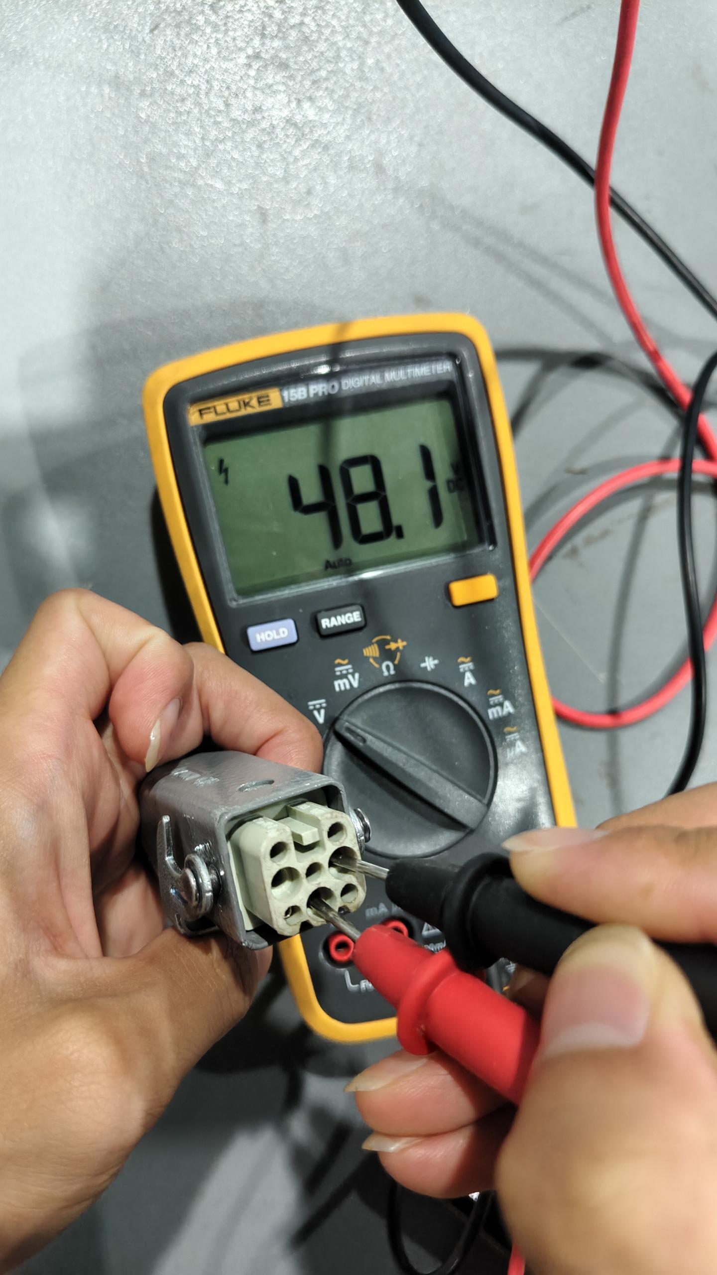 (1)斷開本體,控制柜上電,打開產(chǎn)測(cè)48V強(qiáng)制上電,使用萬(wàn)用表測(cè)量控制柜的輸出端電壓,無輸出可斷電拆開控制柜檢查內(nèi)部接線有無脫落