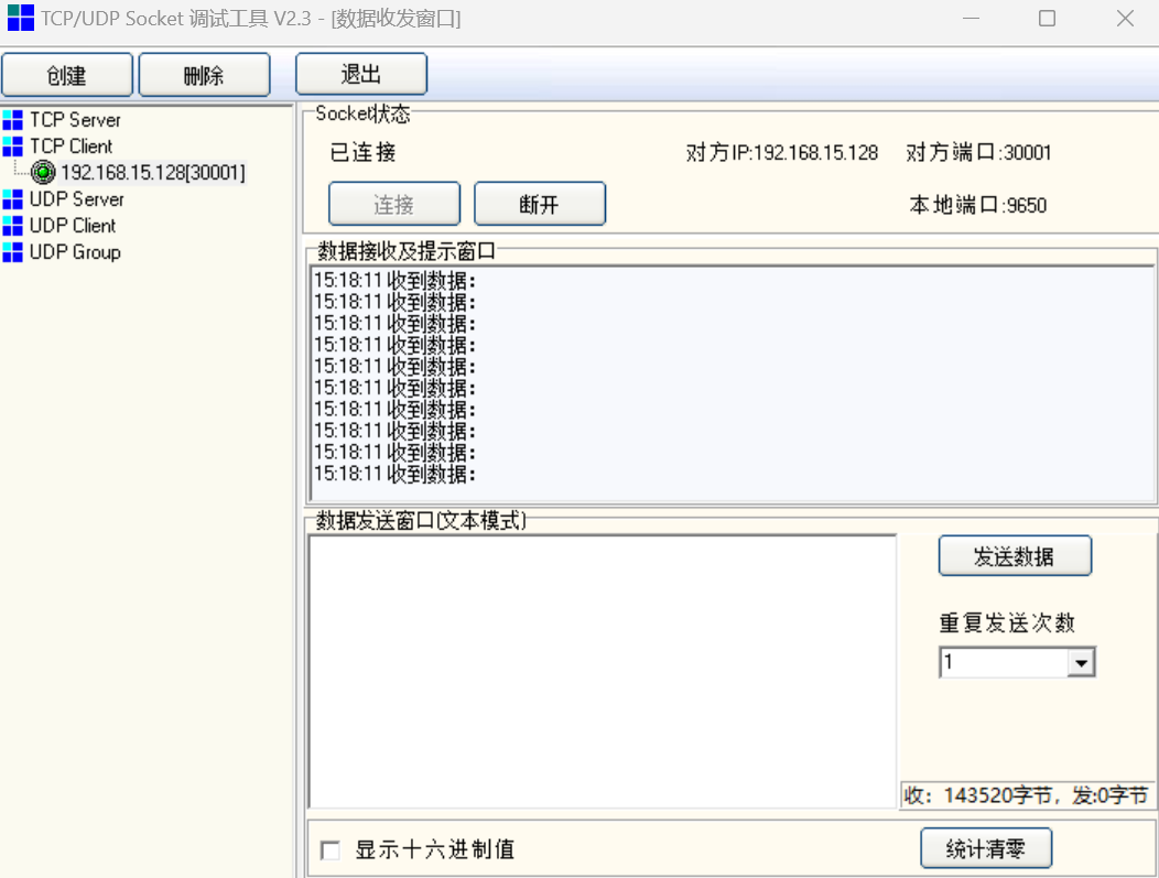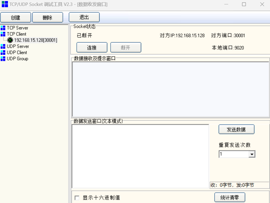 1.本機做主站,機器人做從站。在 SocketTool 軟件里,創(chuàng)建客戶端,輸入在 2.2 里獲取的IP:192.168.15.128 ,端口號參考用戶手冊里的二次開發(fā)端口。