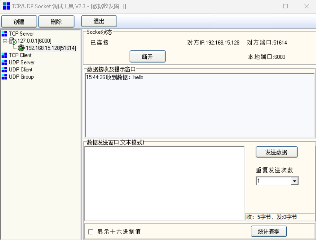 3. 本機 SocketTool ,創(chuàng)建一個服務器,端口6000。