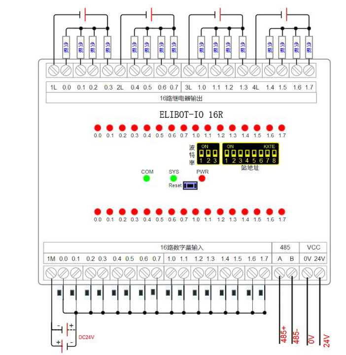 16 路繼電器數字量輸出(對應數量狀態(tài)指示燈),輸出信號支持NPN/PNP。