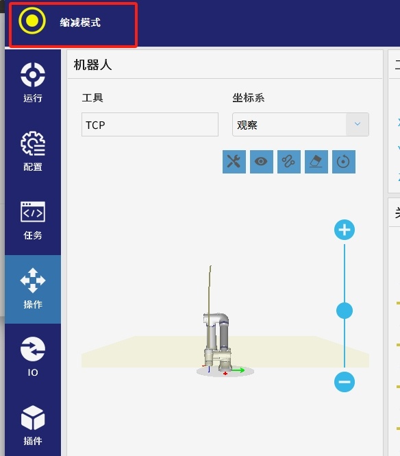 1. 縮減模式是艾利特機器人的安全功能之一,他相對于正常模式而言,指機器人在運動過程中,一旦觸發該模式,機器人會按照設定的速度,動量,功率等來運行,具體的參數設置可以通過“配置---機器人限制”中來設置。
