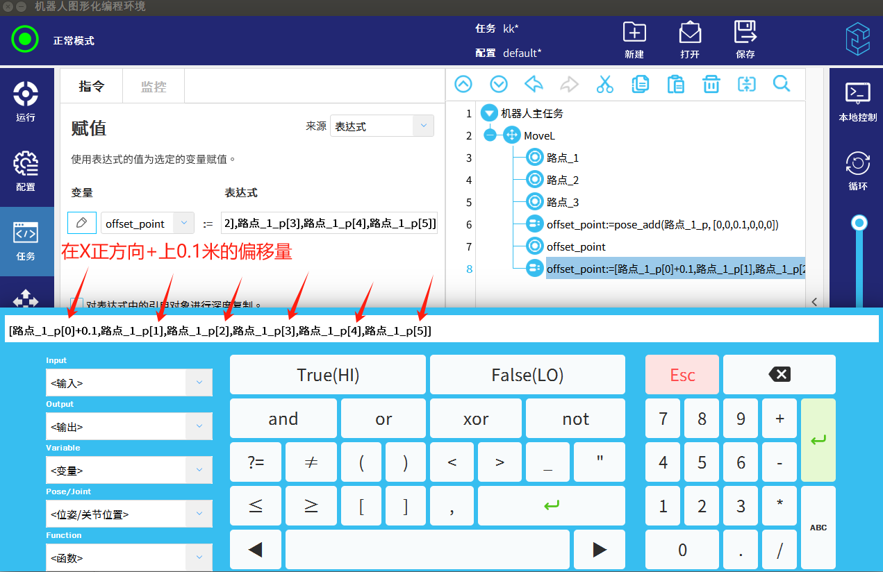可以直接使用路點_1的值進行加減賦值給offset_point,實現點位偏移。