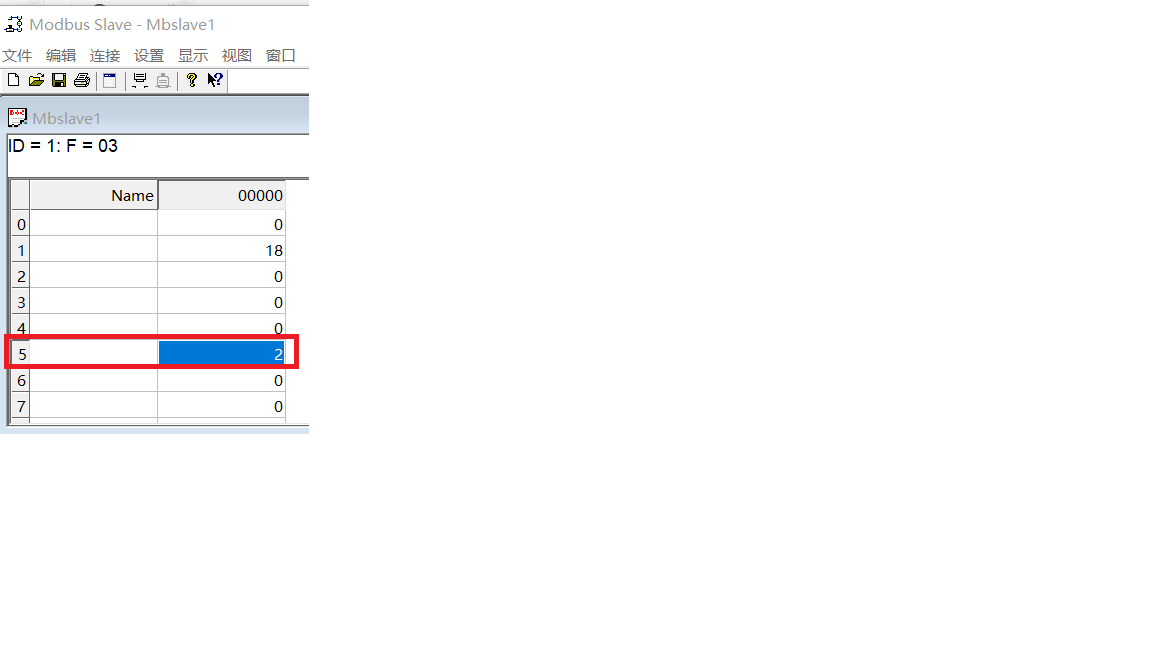 隨后運用調試助手向寄存器5寫入2,運行讀取寄存器腳本。