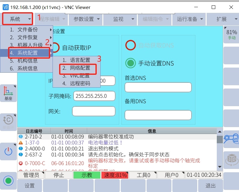 第一步-網(wǎng)線連接-機(jī)器人與PC通過網(wǎng)線連接(機(jī)器人連接接口為FB1口,通過交換機(jī)中轉(zhuǎn)也可以實(shí)現(xiàn))