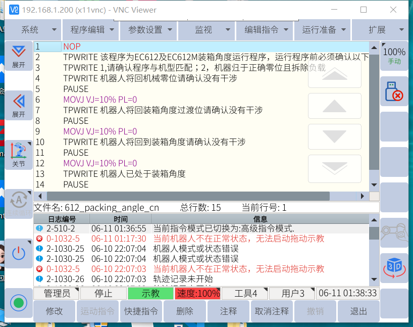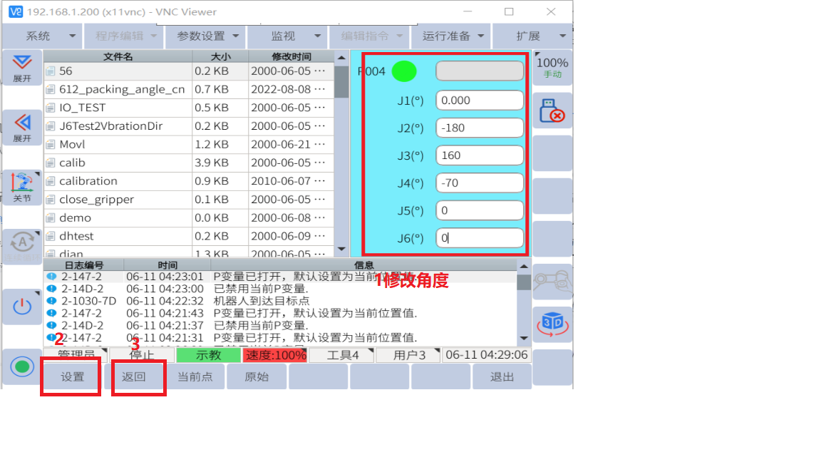 可以用p變量里輸入6個關節角度回打包位,如下圖步驟選用一個未使用的P變量并打開。根據圖片標簽步驟執行。